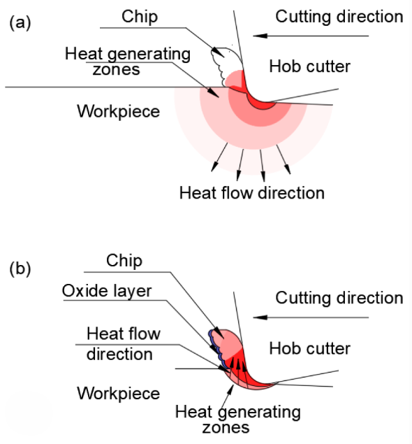 👉 Gear hobbing cutting zone / thermal distribution diagram
